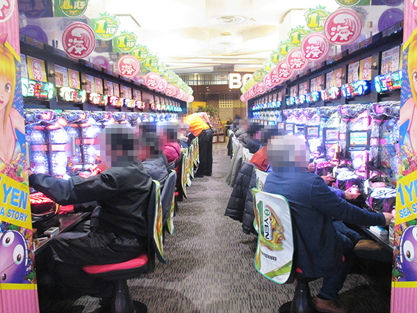 また1円パチンコにおいては、「CRAスーパー海物語 IN JAPAN with 桃太郎電鉄」をはじめ海物語シリーズが満席となるほどの人気。プレイヤーたちはじっくりと機種の醍醐味を味わっているようであった。
