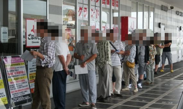 開店前にできていた入場の列とは別に、パチスロコーナーが開放されるまで車のなかで待機しているプレイヤーも見られた。
