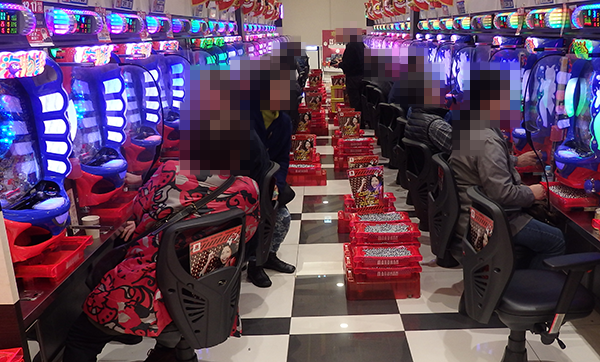 1円パチンコと0.5円パチンコのどちらも高稼働となっており、空き台を探すことがむずかしいほどのにぎわいとなっていた。