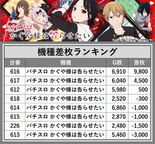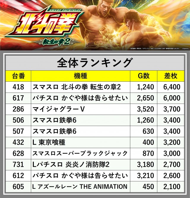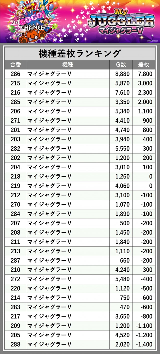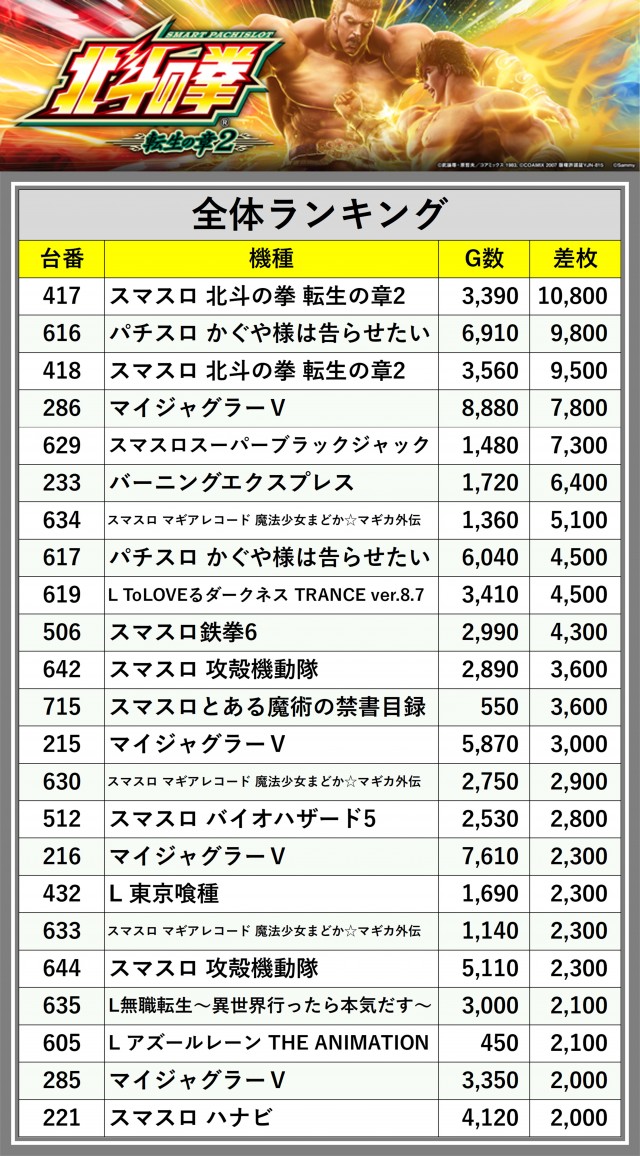 ※差枚数順に掲載しています