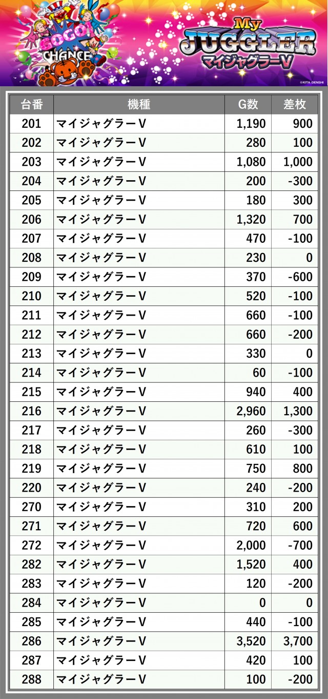 ※台番順に掲載しています