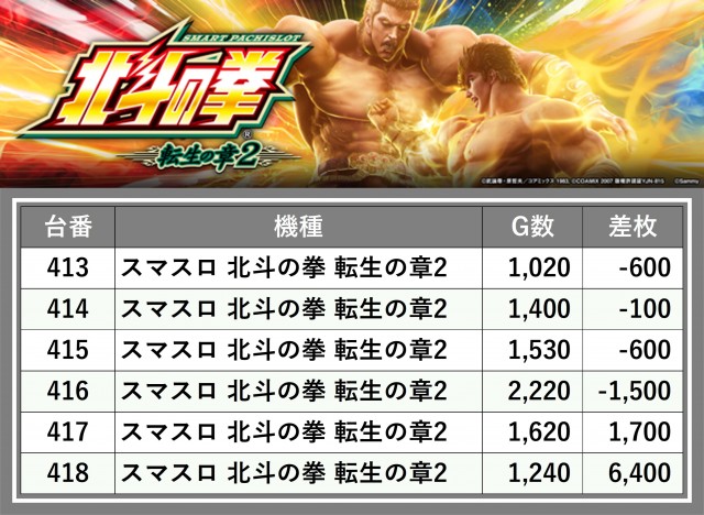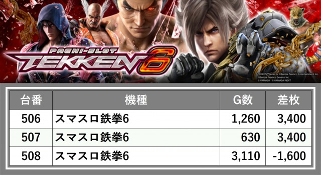 厳選された取材対象機種をはじめ、その他スロット全体から好記録が飛び出した!プレイヤーが楽しんだ1日を下記データにて振り返ってみて欲しい。