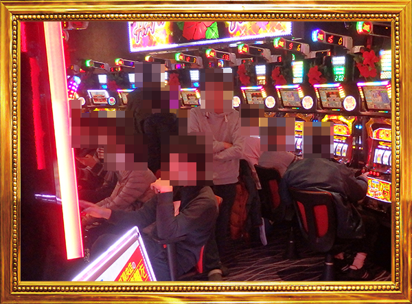 午後の20円パチスロでは、「沖ドキ!-30」とハナハナシリーズの存在感が抜群。大盛り上がりとなっているシマ内では、多くのプレイヤーが満面の笑みを浮かべていた。