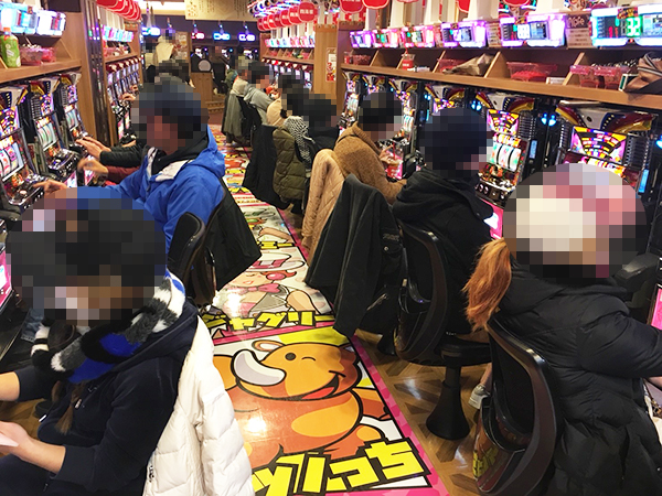 朝の並びでは、約170名ものスロッターが列を形成。同店に対する期待の大きさが伝わってきた。
