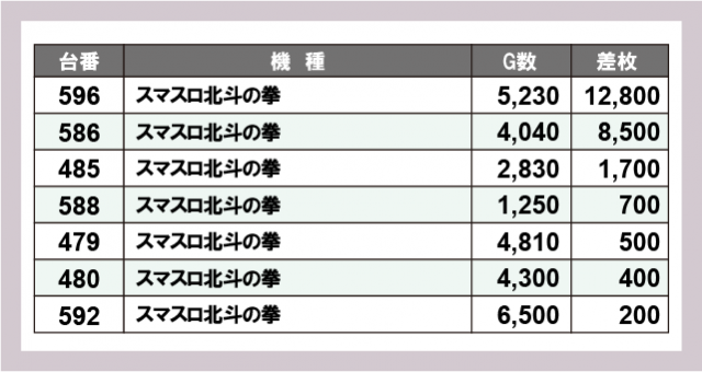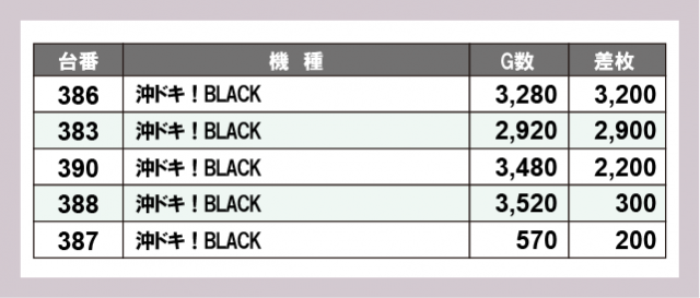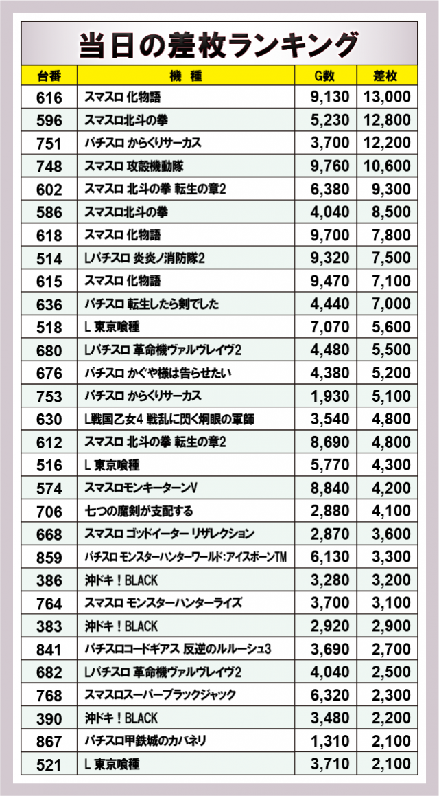 ※差枚数順に掲載しています