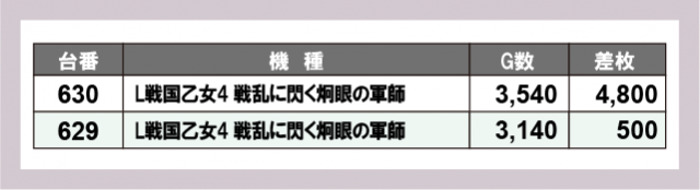 ※台番号順に掲載しています