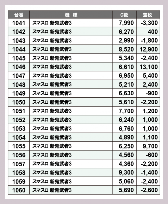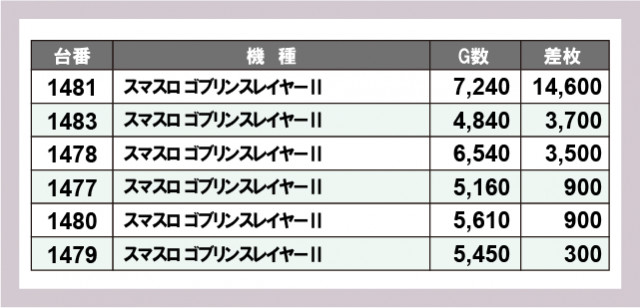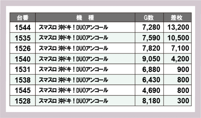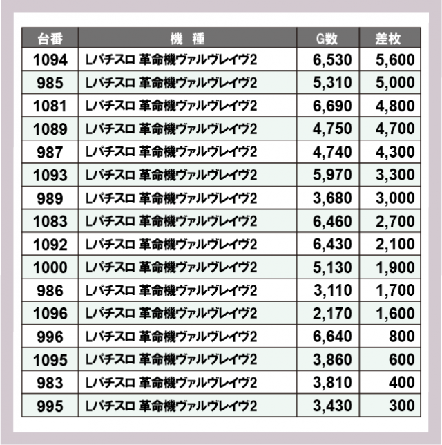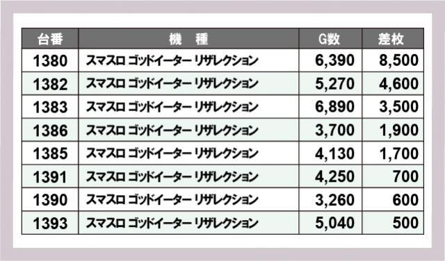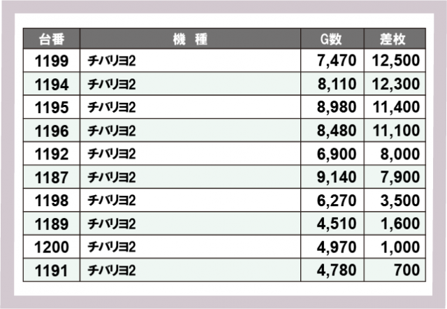 ※差枚数順に掲載しています