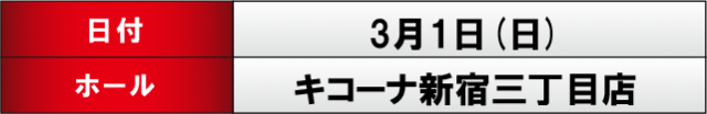 3月1日(日) キコーナ新宿三丁目店にて、DMMぱちタウンの「ONE SPARK取材」を実施。