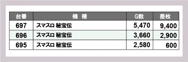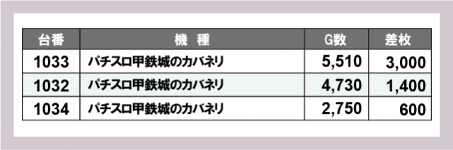 ※台番号順に掲載しています