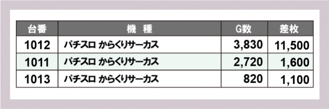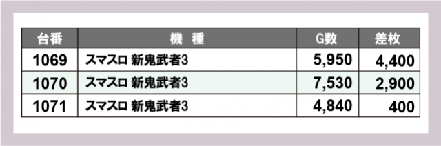 ※台番号順に掲載しています
