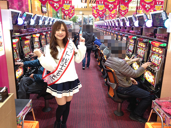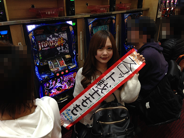パチスロ戦士・ももちゃんの選んだ機種は「バジリスク~甲賀忍法帖~絆」。気合いを入れて、頑張ろうっp(^-^q)