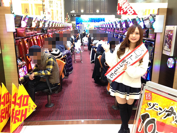 パチスロコーナーでは、ももちゃんも実戦中の「バジリスク~甲賀忍法帖~絆」が大盛況!