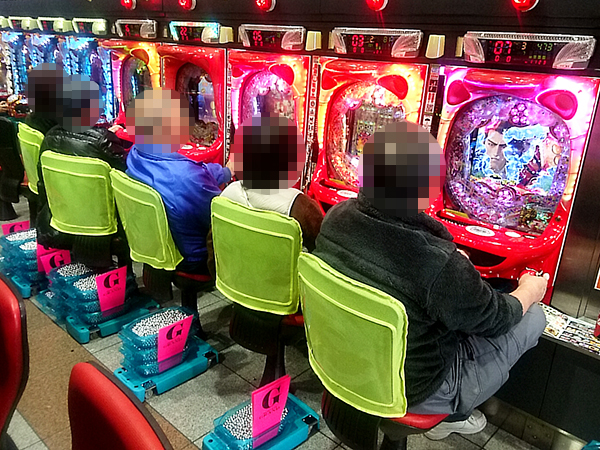 14時ごろの4円パチンコを見ると、新台の「CR真・花の慶次2」が大人気。機種のポテンシャルを上手く引き出しているプレイヤーが多く、シマ全体が熱気に包まれていた。