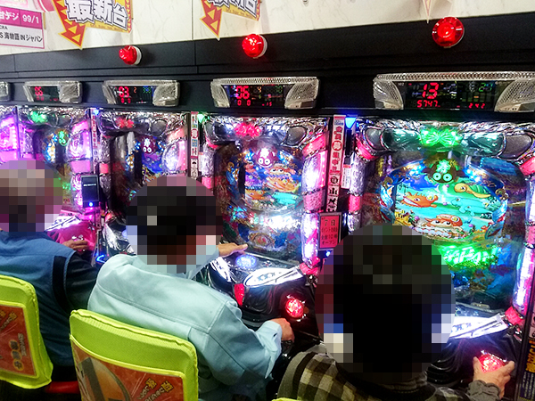 20円パチスロに目を移すと、「バジリスク~甲賀忍法帖~絆」や「ミリオンゴッド-神々の凱旋-」といったAT・ART機を筆頭に華やかなムード。プレイヤーたちのイキイキとした表情が印象に残っている。