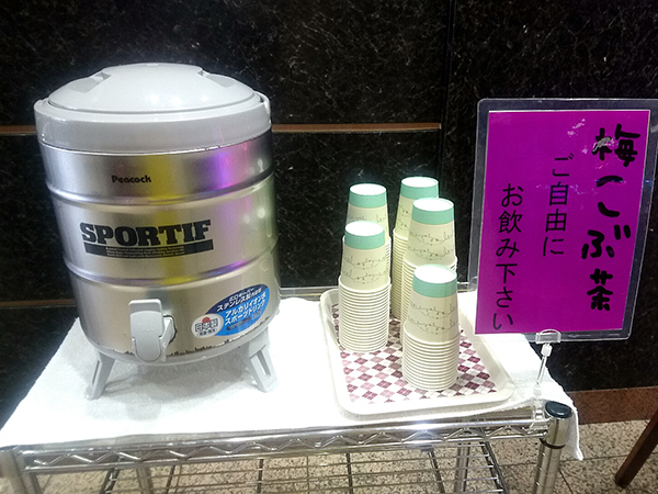 レストスペースにはたくさんの漫画本が用意されているだけでなく、マッサージチェアもあるためリフレッシュに最適。さらに梅こぶ茶が無料で提供され、高齢層のプレイヤーから特に支持を集めていた。