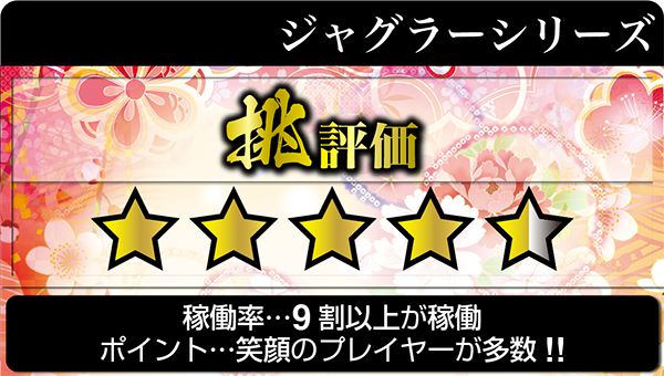 「ハナビ」や「バーサス」もジャグラーシリーズに引けをとらないほどの盛り上がりとなっており、ボーナスタイプとAT・ART機のどちらにも主役となり得る存在が多数。