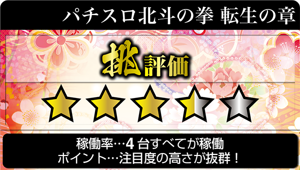 満席となっていた「パチスロ北斗の拳 転生の章」にも、ファンタジスタを発見! 思わずみとれてしまうようなゴージャスな光景はいまでも印象に残っている。プレイヤーたちがみせていたうれしそうな笑顔を忘れるほうが難しいだろう。