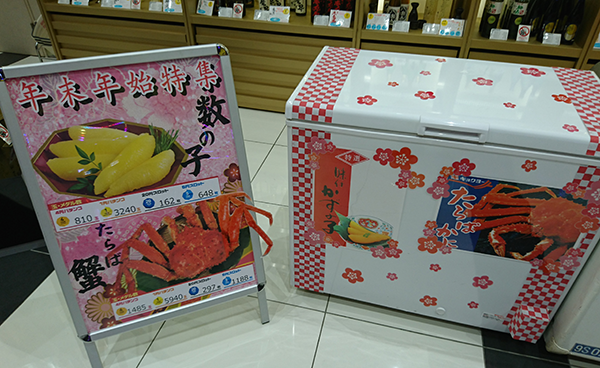 賞品コーナーには「年末年始特集」と題し、たらば蟹や数の子などが用意されていた。季節にあわせた賞品が用意されていることを魅力に感じているプレイヤーもいることだろう。