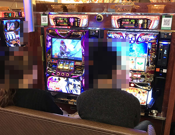 また、ペアシートコーナーにも笑顔を発見。「SLOTバジリスク〜甲賀忍法帖〜Ⅲ」や「戦国パチスロ花の慶次 ~天を穿つ戦槍~」などに活躍をみせる姿があり、友達同士やカップルで充実した時間を過ごせていることだろう。