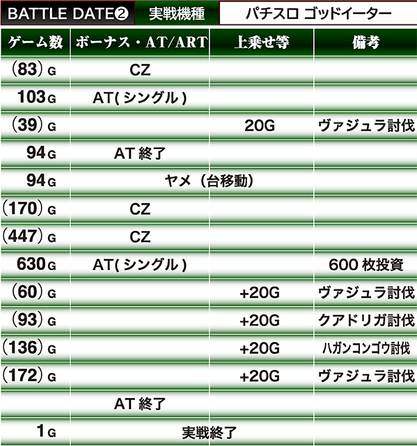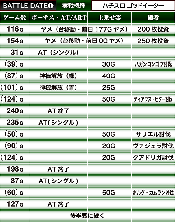 最終戦にして反省すべき点がたくさんの実戦になってしましました。新台に目もくれずゴッドイーターに突っ走ったわけですが、とても良い立ち回りとは言えないですね。