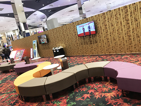 店内には開放感抜群のレストスペースが用意されている。空間の広さからも、大勢のプレイヤーが利用できそうだ。