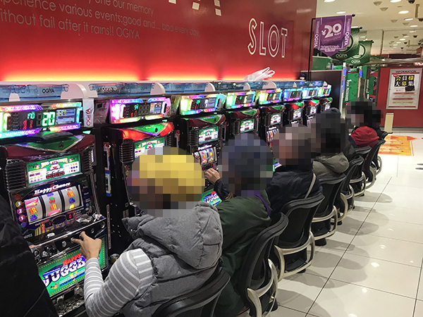 「ハッピージャグラー」などジャグラーシリーズや、「ニューパルサーSPⅡ」にも多くのプレイヤーが集まり、空き台も見当たらないほどににぎわっている様子。遊技をおこなうプレイヤーたちの表情がとても明るく見えた。