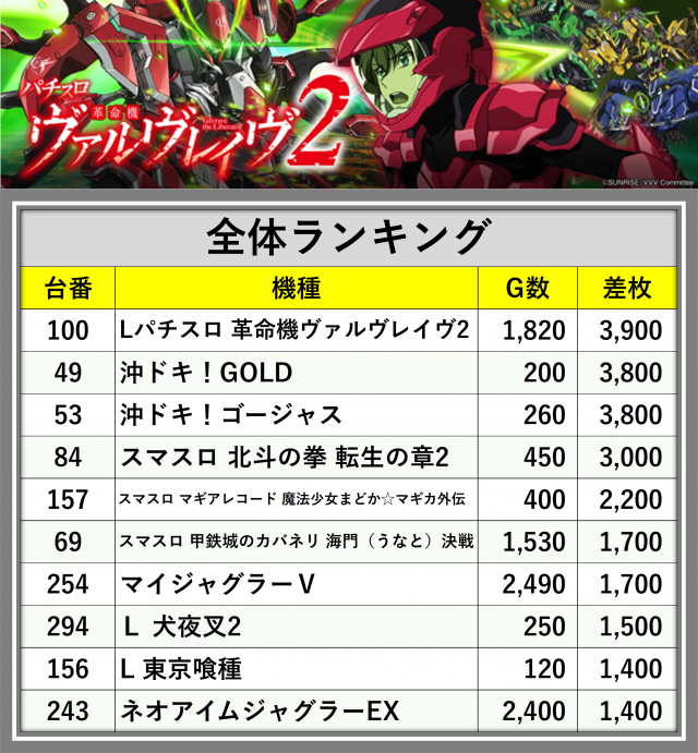 ※差枚数順に掲載しています