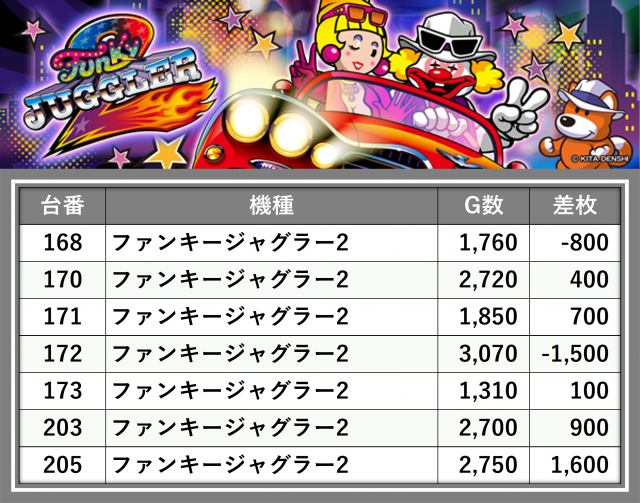 ※台番順に掲載しています