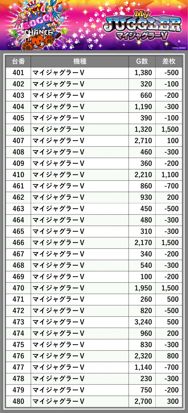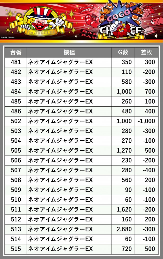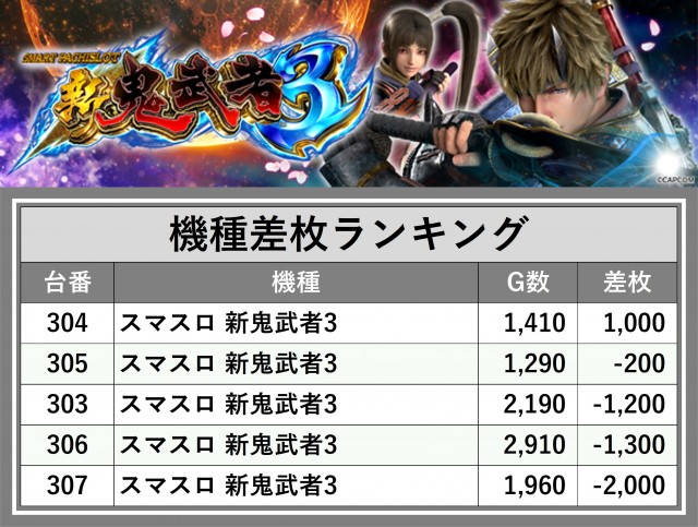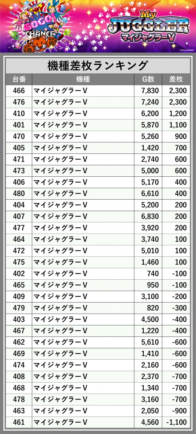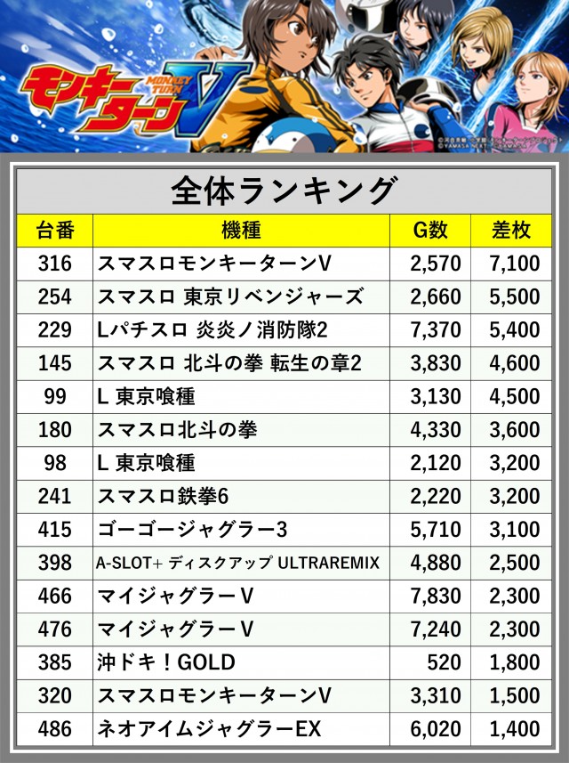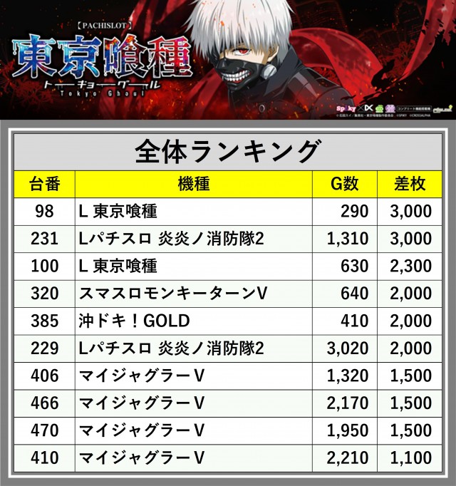 ※差枚数順に掲載しています