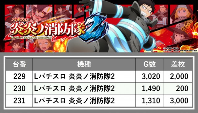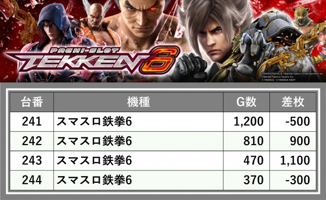 ※台番順に掲載しています