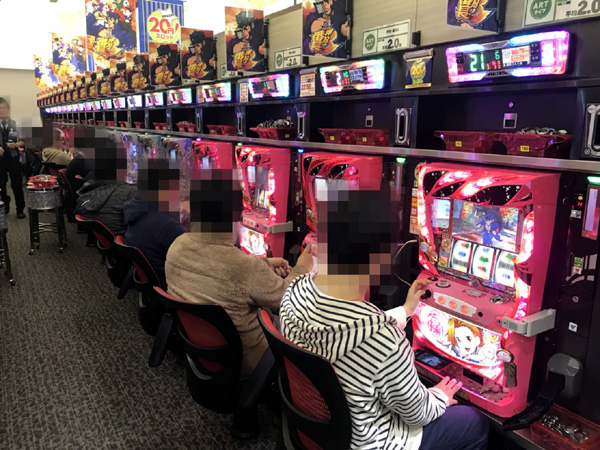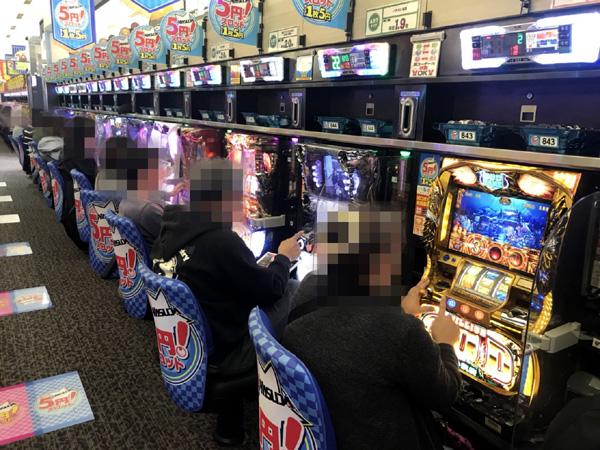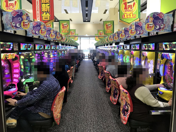 1円パチンコ、5円・2円パチスロといった低貸しコーナーも大盛況。スペックを問わず様々な機種が活気づき、中には理想的な展開を掴み、輝くような笑顔のプレイヤーも確認できた。