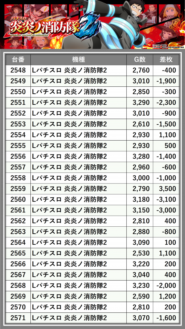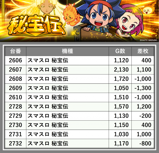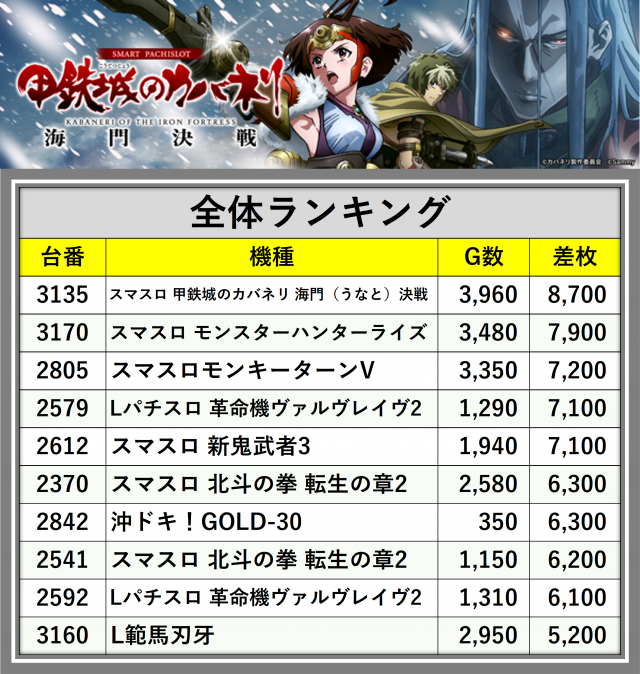 ※差枚数順に掲載しています
