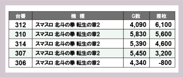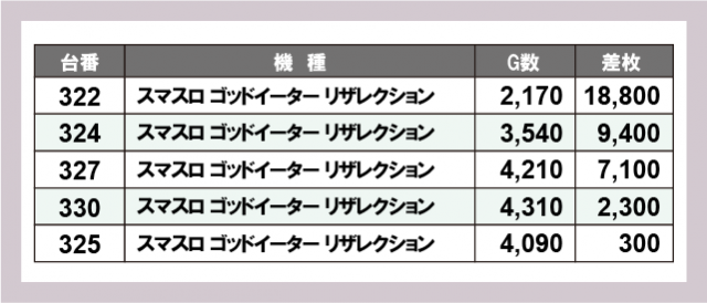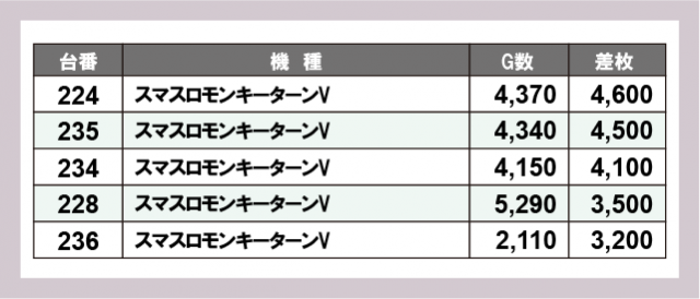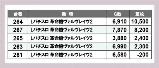 ※差枚数順に掲載しています