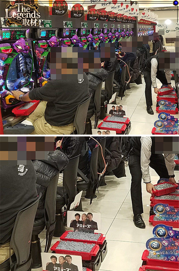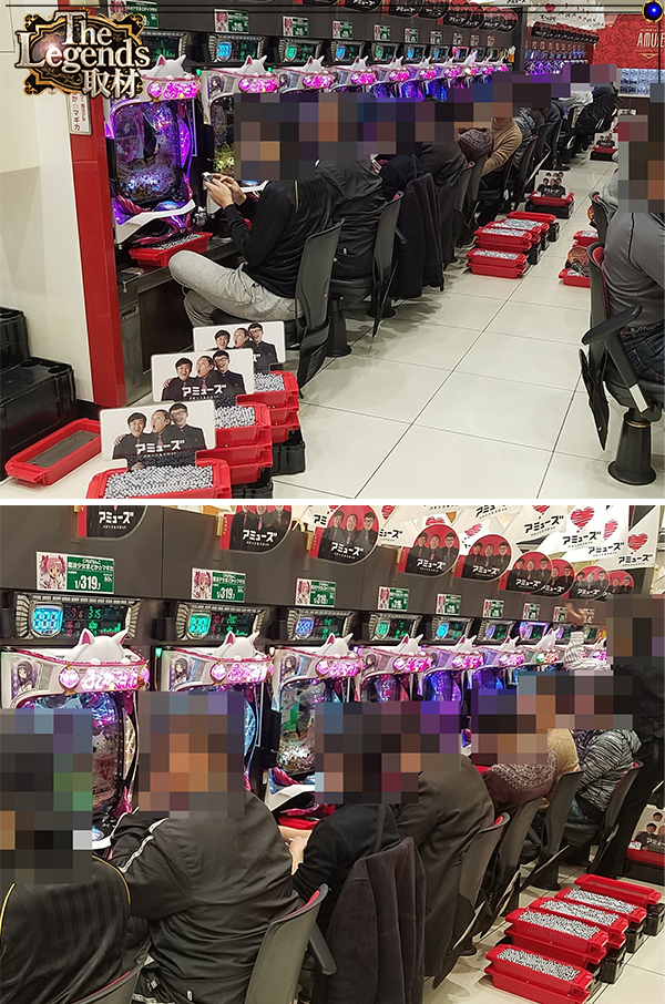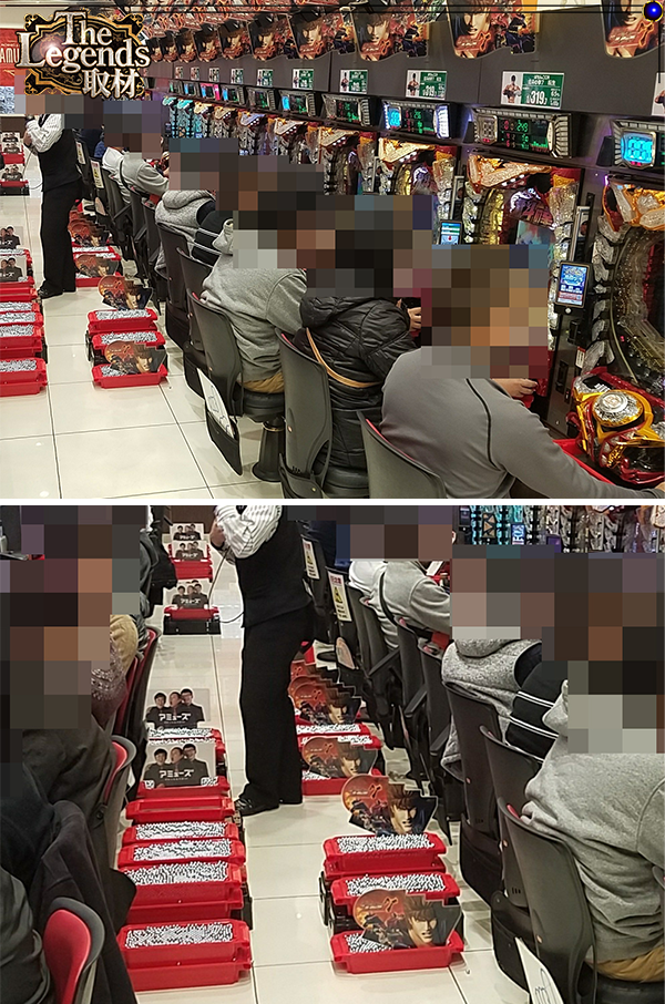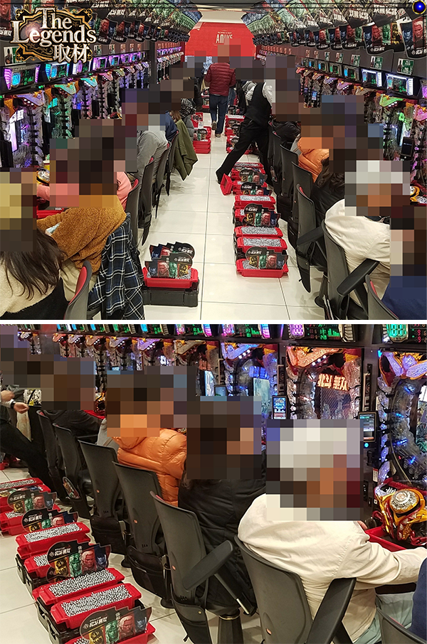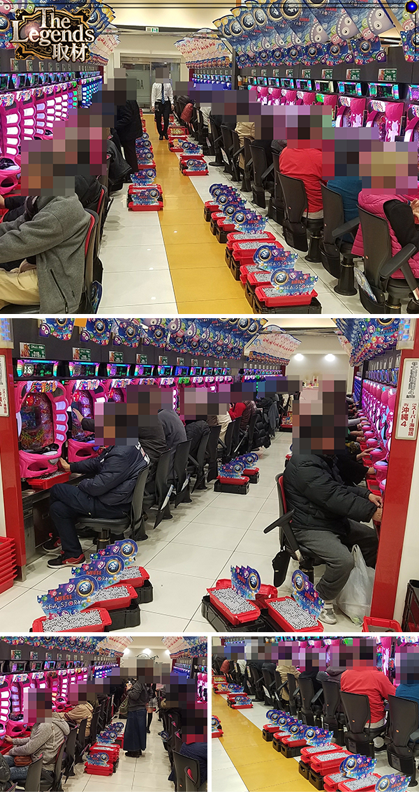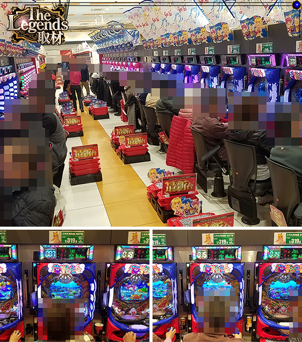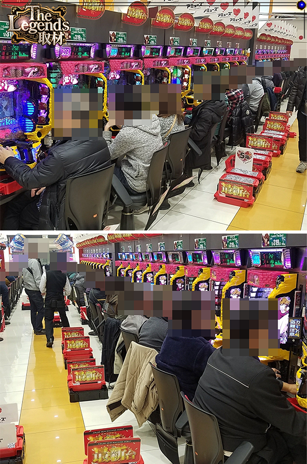 16時頃のホール内には大勢のプレイヤーが来店しており、あちこちに伝説級の光景が広がっているといった状況であった。