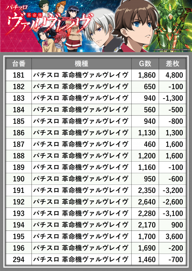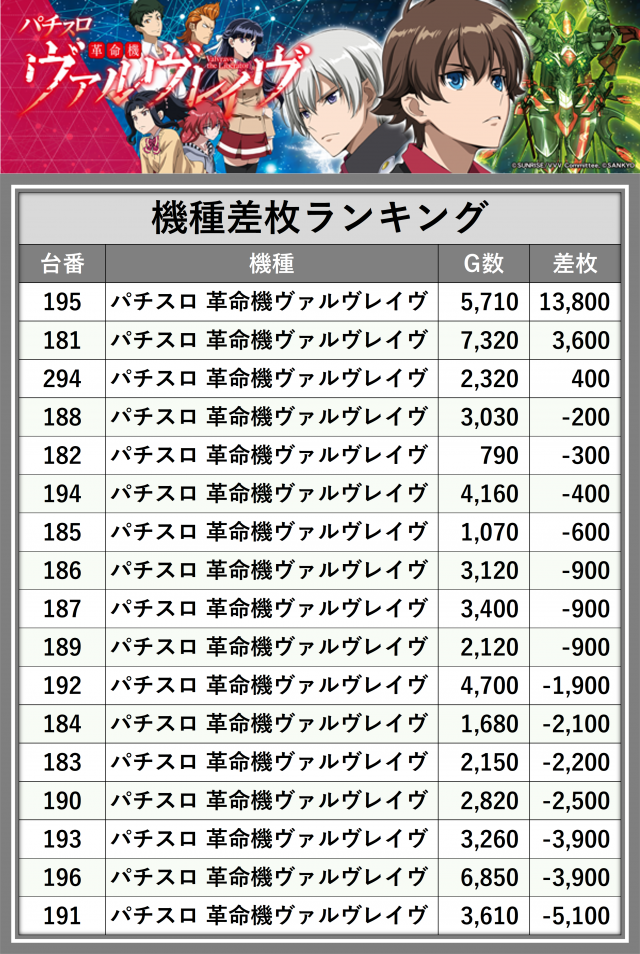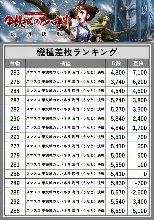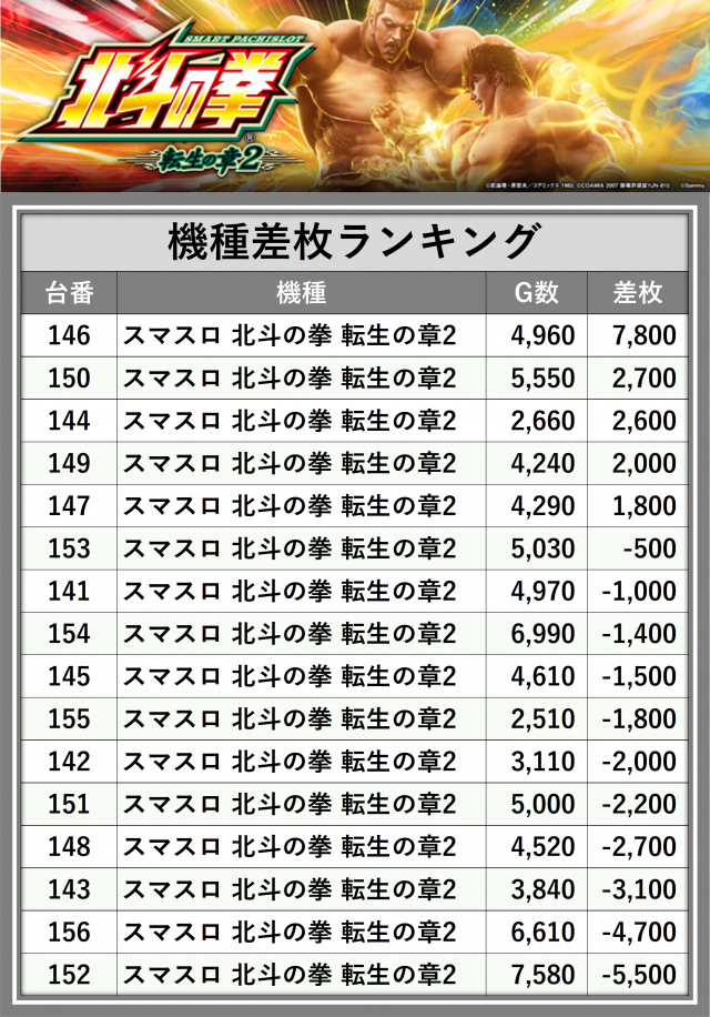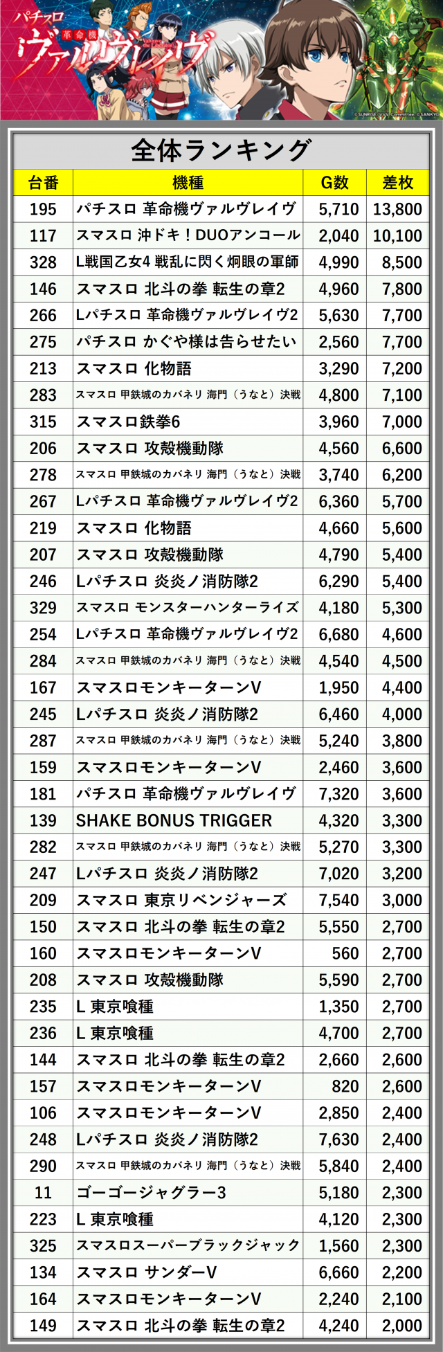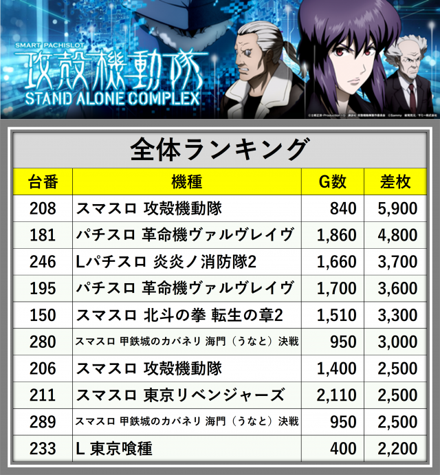 ※差枚数順に掲載しています