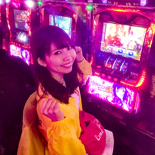 この日はDMMぱちタウンの人気企画“新スロスロ女子部No.1~美人ライター集結編!!~”の実戦のため、美穂さんが来店。「バジリスク~甲賀忍法帖~絆」で実戦をスタートしていた。