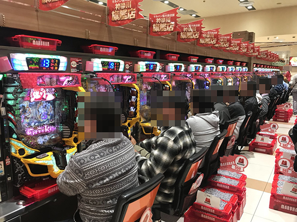 オープン直後は、「政宗2」や「押忍!サラリーマン番長」などが満台となり、「ぱちんこCR真・北斗無双」で遊技を始める姿もあった。