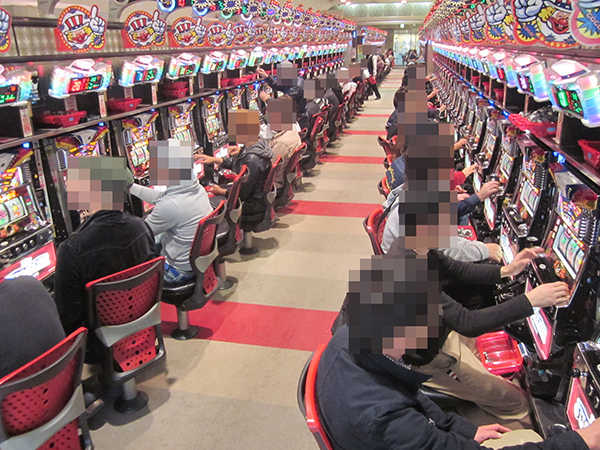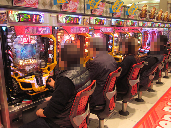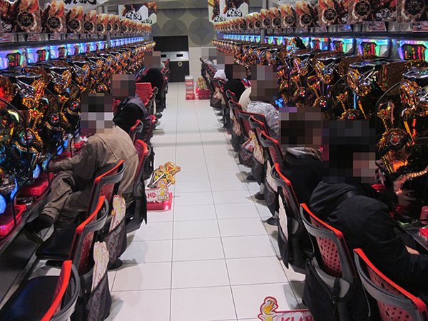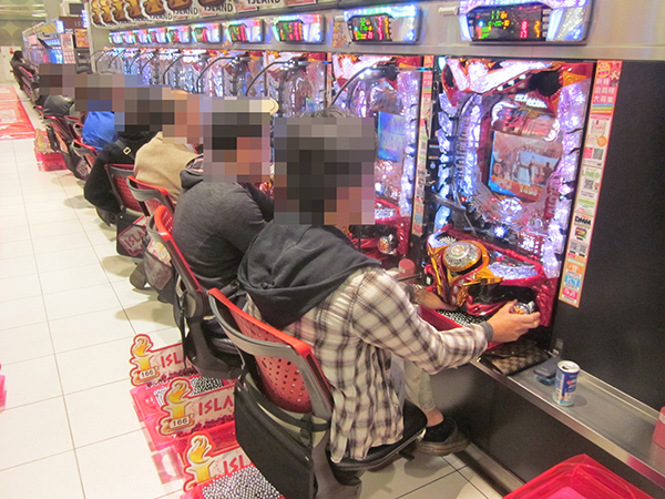 午後の4円パチンコでは、「ぱちんこCR北斗の拳7 転生」などの北斗シリーズがフル稼働とにぎやかな雰囲気に包まれていた。