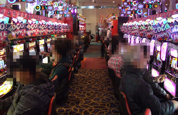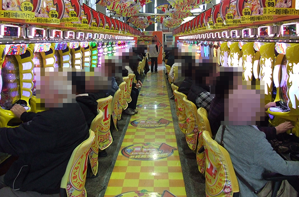 にぎやかな雰囲気のなかで、多くのプレイヤーがうれしそうに遊技を楽しんでいた。