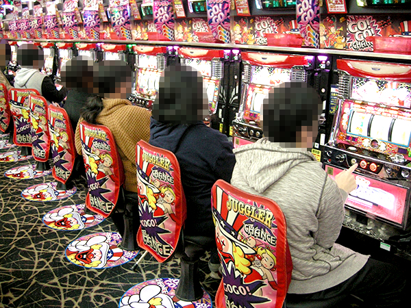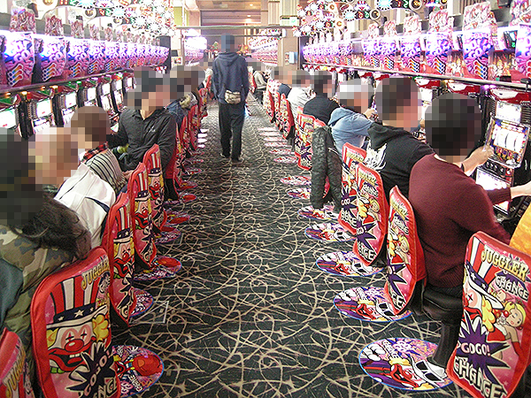 パチスロコーナーを確認すると、同店設置台数131台を誇るジャグラーシリーズが活況の様子。「マイジャグラーⅡ」や「マイジャグラーⅢ」などを中心に、機種の人気ぶりを改めて再確認した光景であった。