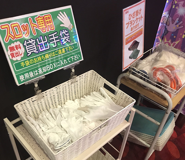 ホール内には、多彩な種類の消臭スプレーや遊技用の手袋などが用意されている。サービス面が充実していることも、数ある魅力のひとつだろう。