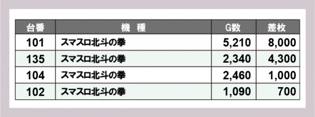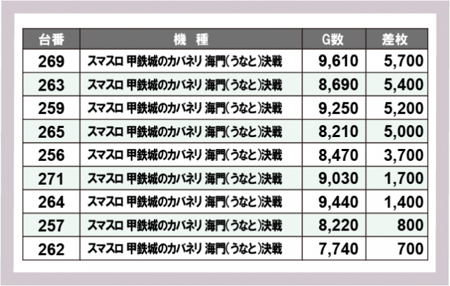 ※台番号順に掲載しています