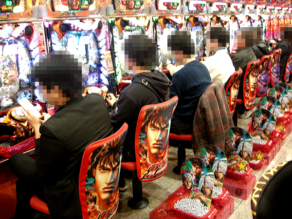 14時ごろの4円パチンココーナーを見てみると、新台の「CR真・花の慶次2」が大人気。機種のポテンシャルを発揮しているプレイヤーが目立ち、魅力的な光景が広がっていた。