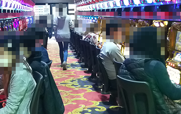 開店直後は、明るい表情で遊技をはじめている姿が目立っていた。