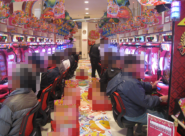 午後の4円パチンコをみてみると、多くのプレイヤーが笑顔で遊技をおこなっていた。