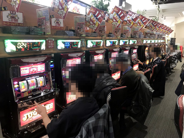 ボーナスタイプでは、「ゴーゴージャグラー」をはじめとしたジャグラーシリーズが人気。コーナー全体が明るい雰囲気に包まれており、どのプレイヤーも納得の遊技がおこなえていたことが伝わってきた。