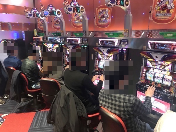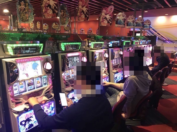 お昼を過ぎた頃の1000円/47枚パチスロでは、「バジリスク〜甲賀忍法帖〜絆」や「SLOT魔法少女まどか☆マギカ」が高稼働。なかには機種のポテンシャルを最大限に発揮しているプレイヤーも存在しており、理想的とも言える展開に笑顔を隠しきれない様子であった。