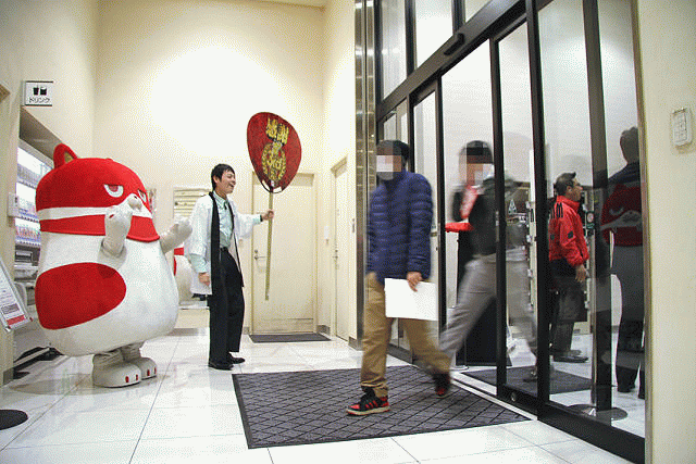マスコットの「にゃんまる」も応援だ〜!!