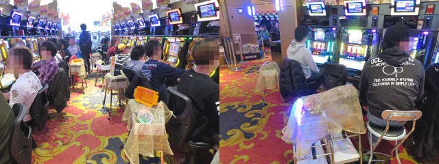 朝入場口すぐのパチスロフロアは、真っ先に熱気ムンムン!!