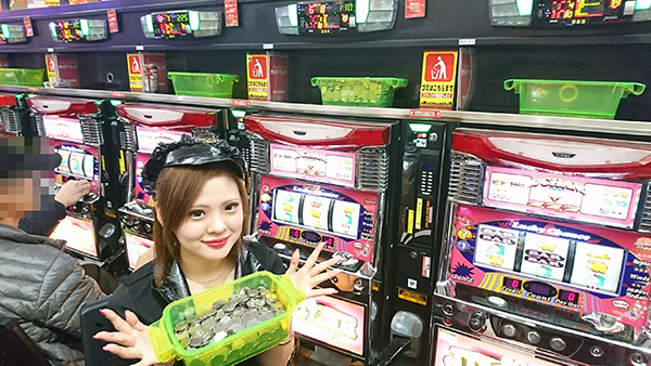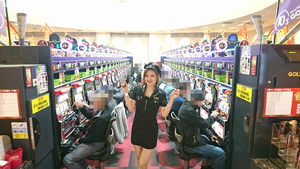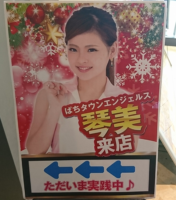 パチンココーナーは、新台の「CR大海物語4」が満席。そのほかにも盛況となっている機種は多く、お客様はもちろんのこと、店内を回る琴美ちゃんも笑みを浮かべていました(o’∀’o)